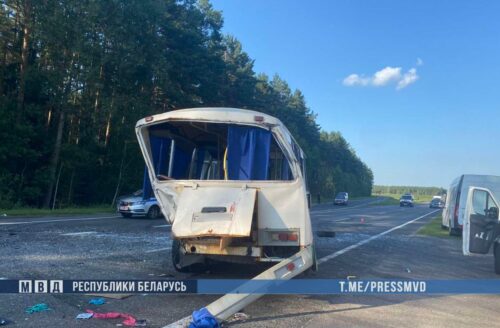 В результате столкновения автобуса и микроавтобуса в Березовском районе пострадали 15 человек, сообщает Минздрав.