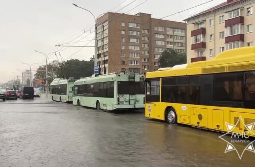 В Минске сильный дождь нарушил работу общественного транспорта, а в Барановичах под воду из-за него ушел рынок.