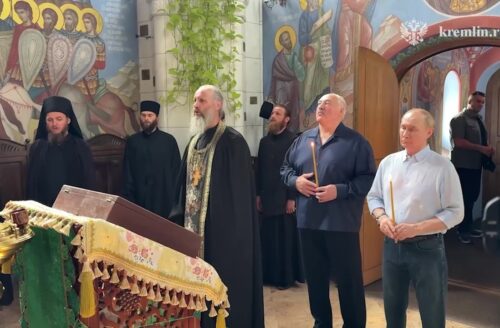 Александр Лукашенко на Рождество традиционно посетил православный храм. Его сопровождал сын Николай.