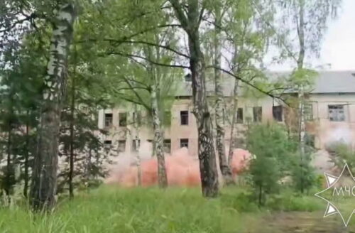 В Новополоцке на улице Озерной взорвали 3-этажное аварийное здание казармы. Снос осуществили взрывотехники