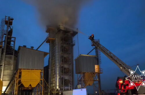 Сегодня около 10 часов возле деревни Подберезье Витебского района загорелся зерноочистительно-сушильный комплекс.