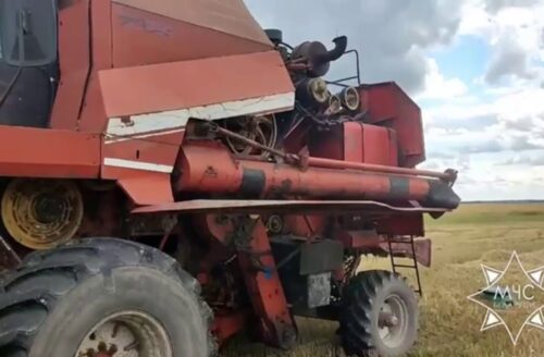 В поле возле поселка Красный Костюковичского района загорелся комбайн. Сотрудники МЧС во время дежурства
