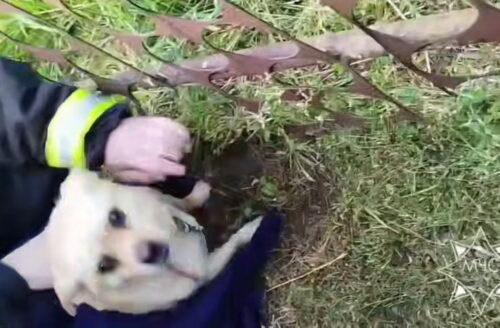 Собака застряла в металлическом заборе в деревне Андроновичи Витебского района, сообщает пресс-служба МЧС.