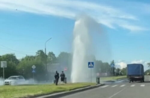 На улице Центральной случилось повреждение трубопровода, в результате чего из дороги забил фонтан.