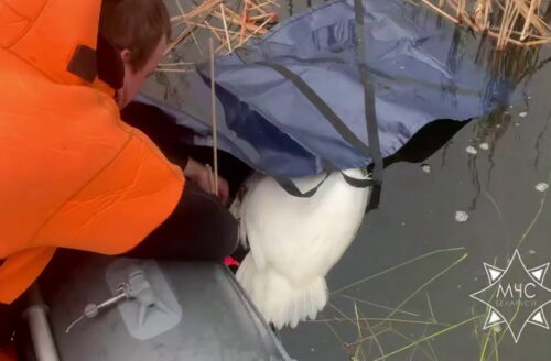 Лебедь попал в ловушку на озере, расположенном в садовом товариществе «Пятигорье» в Дзержинском районе.