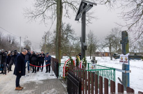 Президент Польши Анджей Дуда возложил венок под кресты в память убитых жителей деревни Залешаны Гайновского
