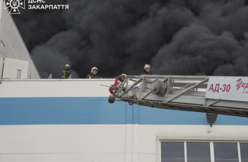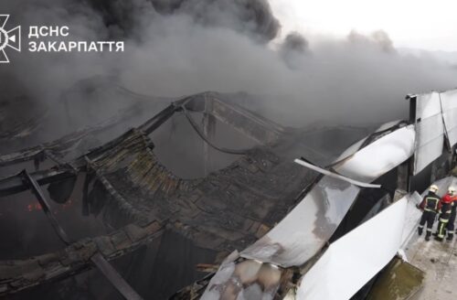 В украинском городе Мукачево уже сутки продолжается ликвидация пожара, который возник в результате вчерашнего
