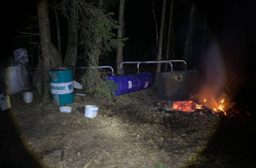 Сотрудники Пружанского РОВД выявили во время рейда в лесном массиве мини-завод по производству алкоголя