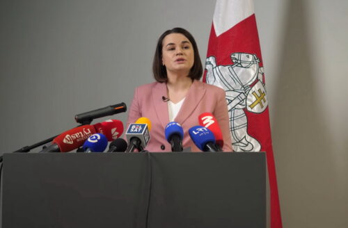 В Вильнюсе началась пресс-конференция Светланы Тихановской и освобожденных политзаключенных.