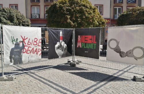 У польскім Уроцлаве на вуліцы Свідніцкай праходзіць выстава плакатаў-банераў Уладзіміра Цэслера.