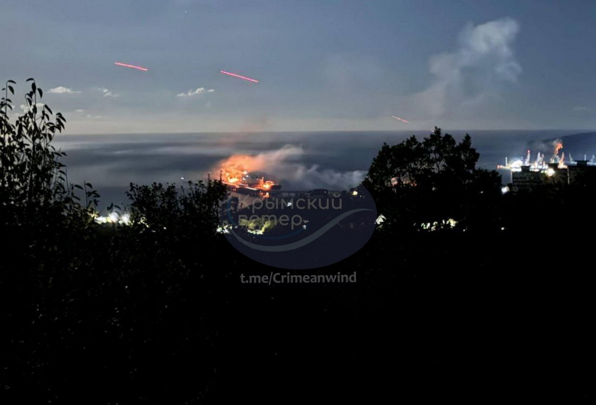 «В порту Туапсе фрагменты беспилотников упали на нефтеналивной танкер. Пострадала палубная надстройка. Экипаж танкера эвакуировали. На судне возник пожар. Также повреждения получили строения и инфраструктура терминала. Кроме того, в здании железнодорожного вокзала повреждено остекление», — говорится в сообщении.