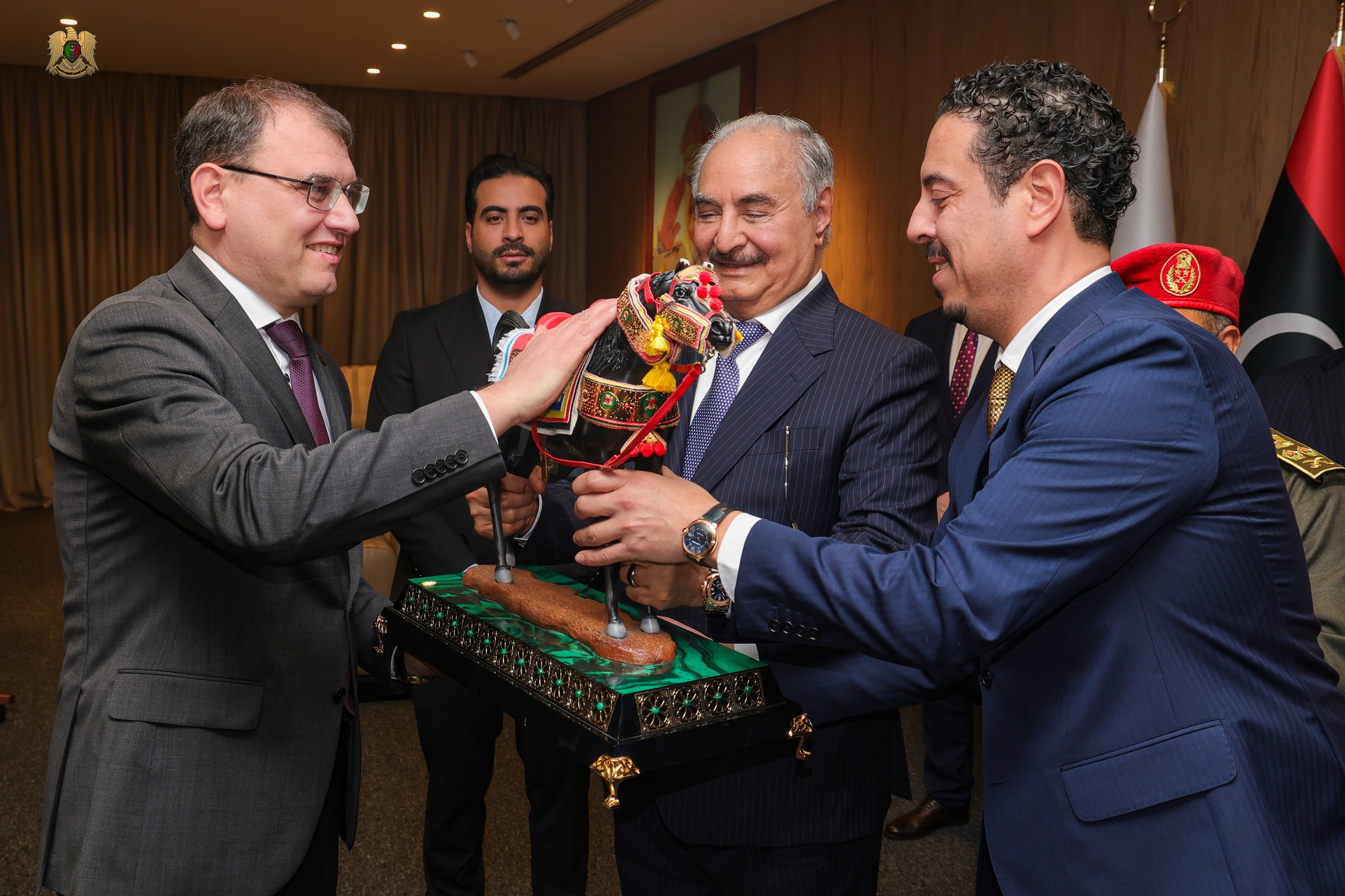 Виктор Каранкевич передал главнокомандующему приветствие от «Александра Лукашенко, а также всего беларусского народа, отметив ключевую роль маршала Хафтара как на внутренней, так и на международной арене».