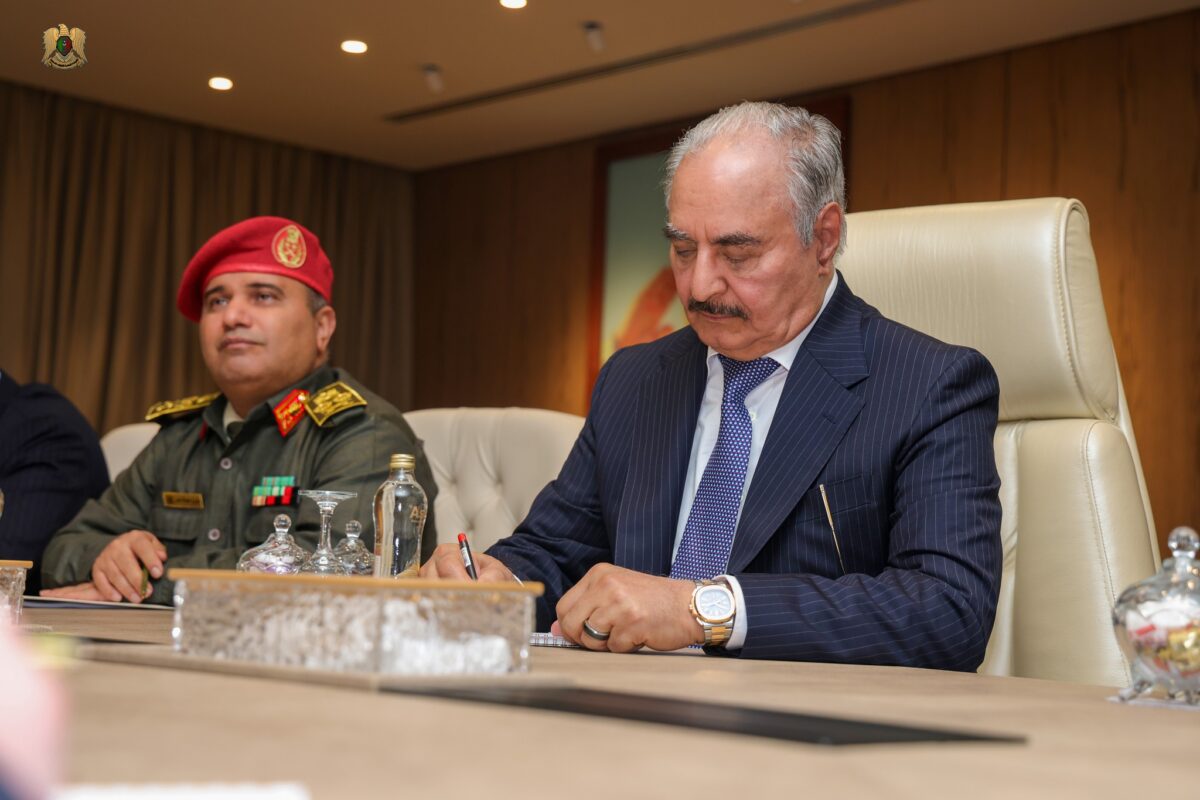 Вечером 10 марта члены беларусской правительственной делегации встретились с фельдмаршалом Ливийской национальной армии (ЛНА) Халифой Хафтаром, сообщает пресс-служба правителя Восточной Ливии.