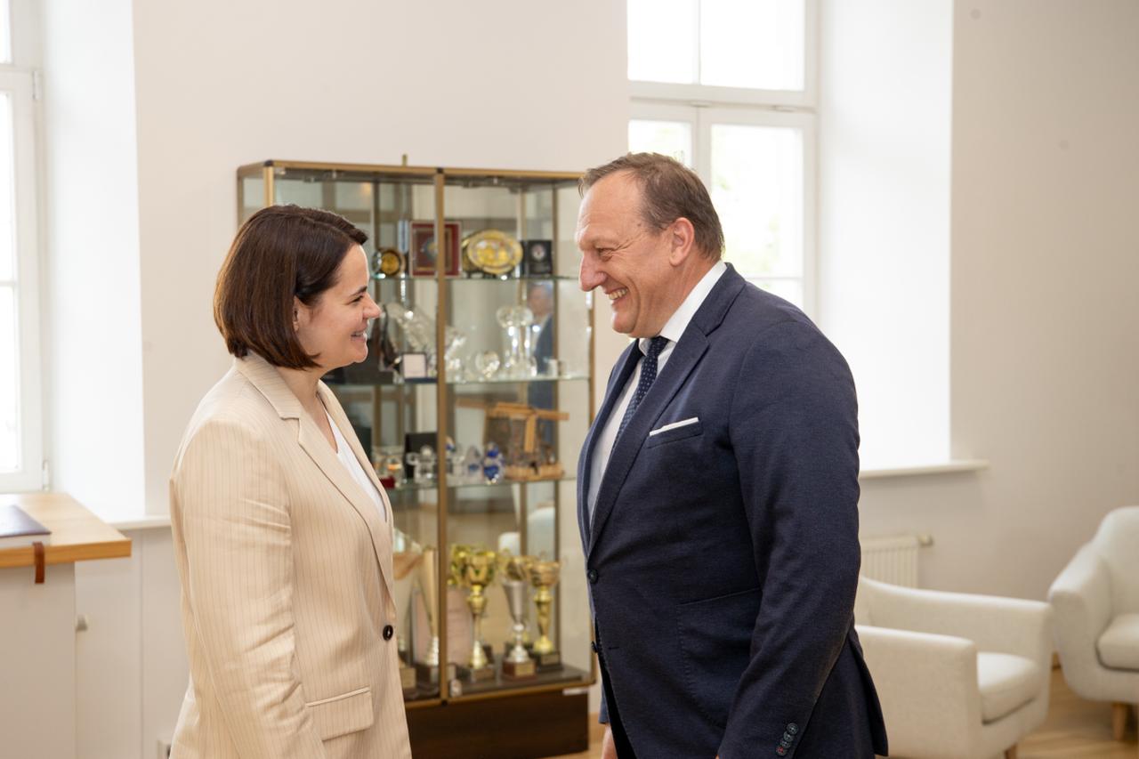 Светлана Тихановская встретилась с министром внутренних дел Литвы Владиславом Кондратовичем. На встрече также присутствовали руководитель Департамента миграции Эвелина Гудзинскайте и посол по особым поручениям Аста Андрияускене. Разговор проходил на беларусском языке, сообщает Офис Тихановской.