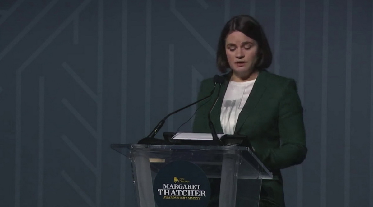 «Маргарет Тэтчер говорила, что мужество — это самая важная добродетель. Сегодня я посвящаю эту награду мужественным беларусским женщинам, которые борются за свободу. Которые не идут за толпой, а прокладывают путь. Таким женщинам, как Мария Колесникова, которая порвала свой беларусский паспорт и бросила его в окно машины, чтобы ее не депортировали из страны. Как Катерина Андреева, которая продолжала вести прямую трансляцию с митинга, пока ее арестовывал ОМОН Лукашенко. Как Нина Багинская, пожилая женщина, которая снова и снова протестовала на улицах, несмотря на многократные аресты и приговоры. Наши собственные железные леди. Многие из этих женщин остаются за решеткой. И мы не прекращаем борьбу за их освобождение. Так же как и не остановимся бороться за нашу страну», — заявила политик.