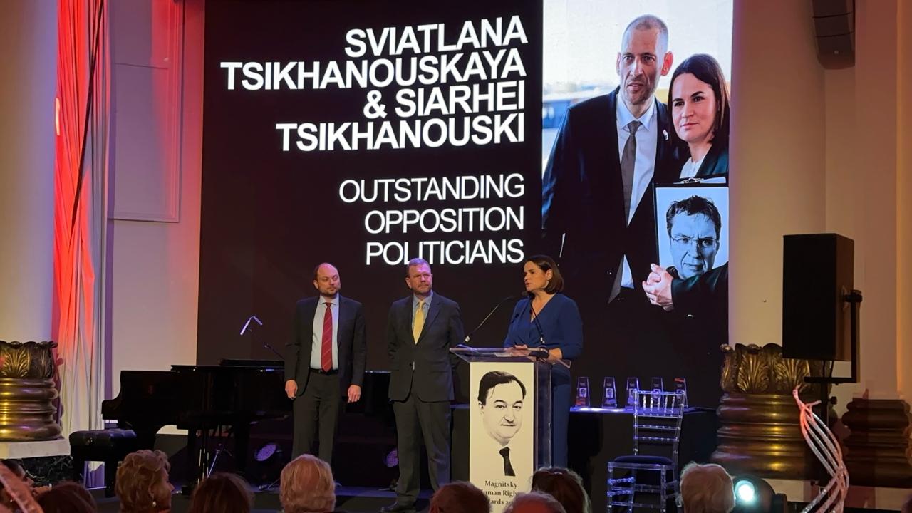 Светлана Тихановская в четверг получила Премию Магницкого в сфере прав человека. Она была удостоена ее вместе с супругом Сергеем Тихановским.