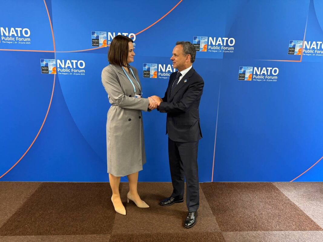 Светлана Тихановская прибыла в Гаагу для участия в Общественном форуме НАТО. Она встретилась с министром иностранных дел Нидерландов Каспаром Вельдкампом.
