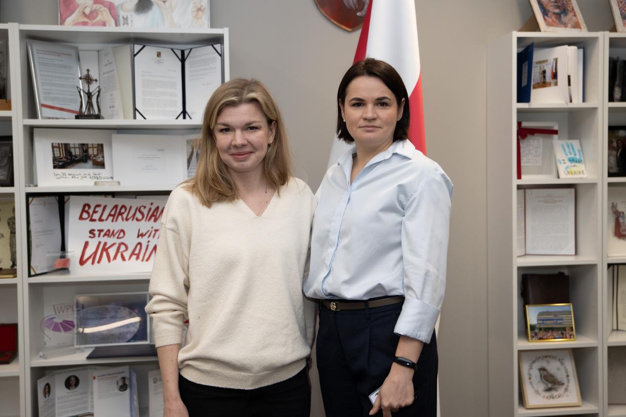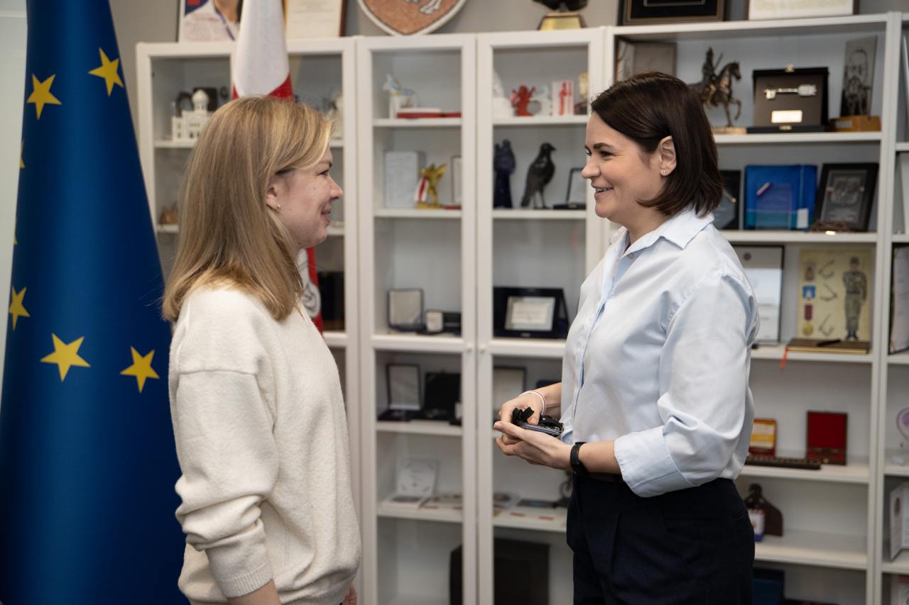 Светлана Тихановская встретилась с журналисткой Ксенией Луцкиной, бывшей политзаключенной. Встреча прошла в Вильнюсе, сообщает Офис Тихановской.