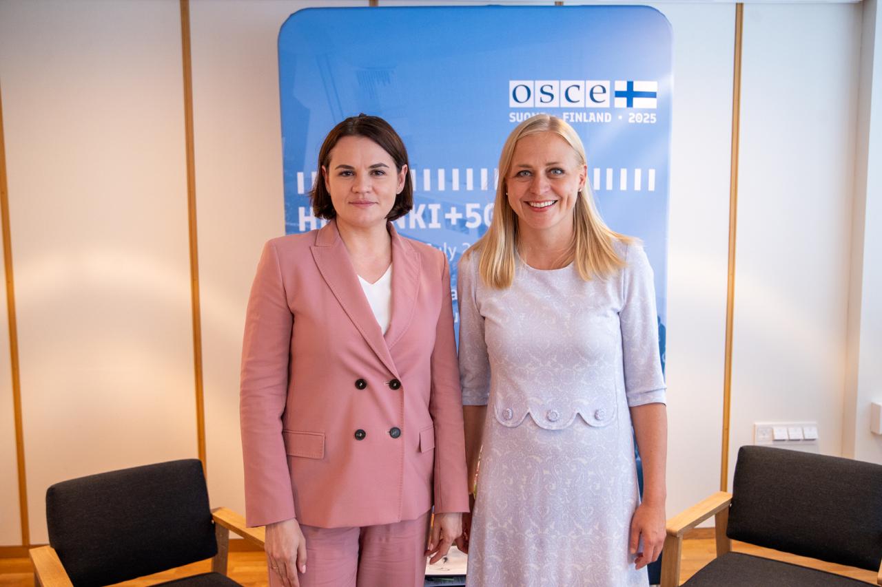 Светлана Тихановская приняла участие в конференции Helsinki+50 в Финляндии и провела ряд встреч с ключевыми политиками Финляндии, среди которых – президент страны Александр Стубб, министр иностранных дел Элина Валтонен, спикер парламента Юсси Халла-ахо.