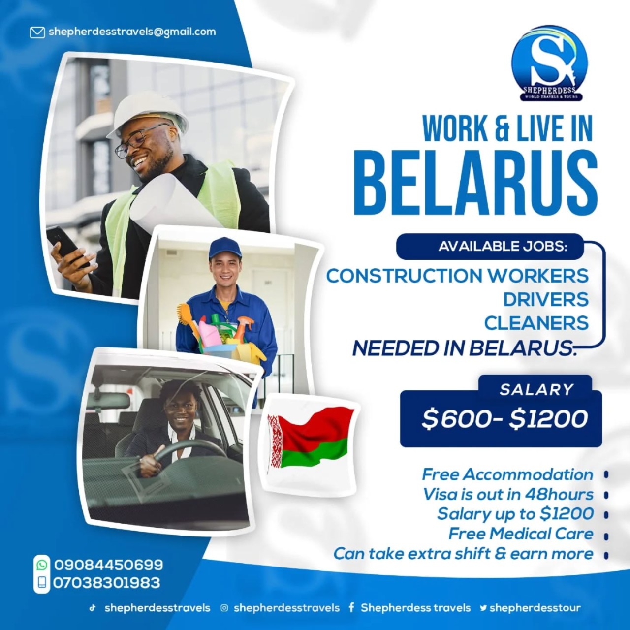 Компания Shepherdess World Travels &Tours, расположенная в городе Эгбеда на юго-западе Нигерии, предлагает туры для работы в Беларуси. Визу обещают сделать за три дня.