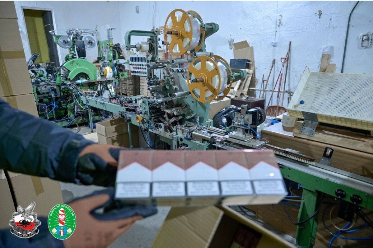 В Миньском повяте правоохранители обнаружили полностью оборудованную профессиональную линию по производству сигарет. На «фабрике» были установлены производственные машины, табак, готовые сигареты. В том же повяте обнаружили нелегальное производство по упаковке сигарет, а в соседнем — огромный склад, на котором хранилась готовая продукция, мешки с табаком, оборудование, необходимое для производства и упаковки сигарет.
