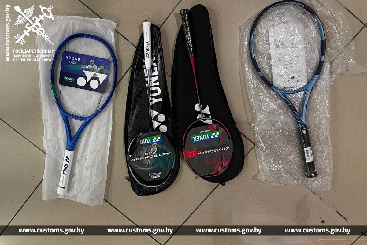В Национальном аэропорту «Минск» таможенники обнаружили у него ракетки для тенниса и бадминтона, струны и сумки к ним, обмотки для ручек ракеток. Мужчина признался, что собирался доставить инвентарь дальше в Россию.