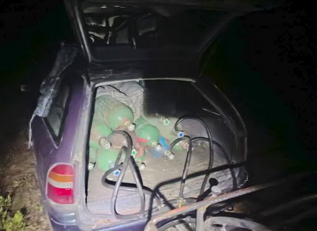 При осмотре местности обнаружены 22 газовых баллона и аэростатический шар. Мужчины передвигались на автомобиле с прицепом.