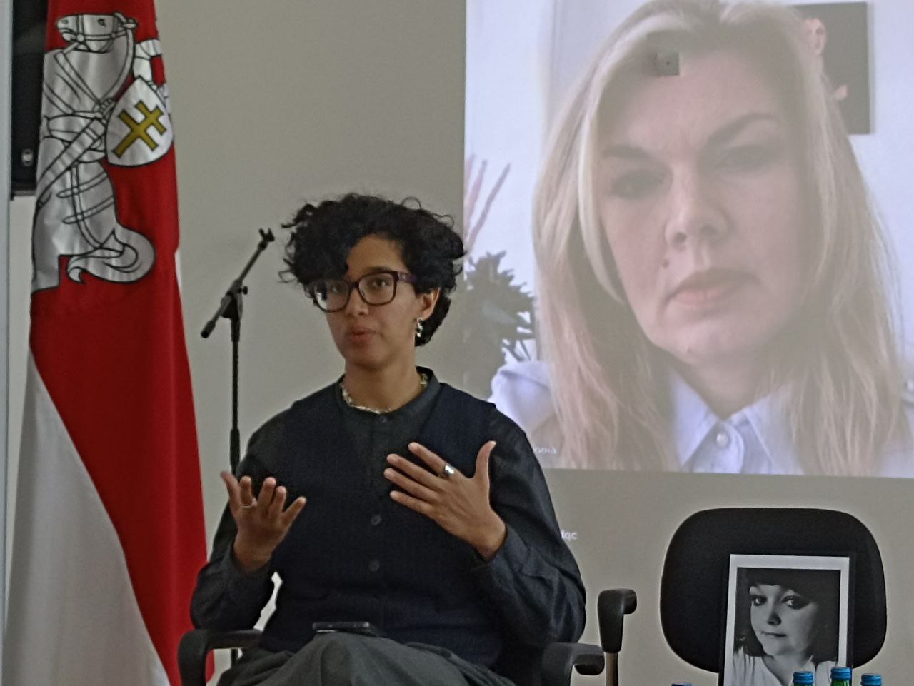 Партрэты памерлых жанчын у чорных рамках былі размешчаны на крэслах за сталом, а напрыканцы прысутныя ўшанавалі іх памяць хвілінай маўчання.