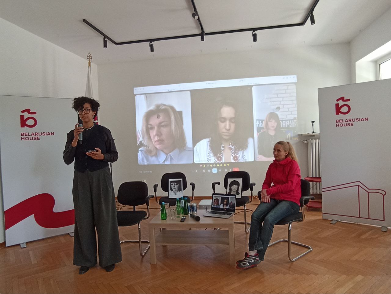 Анлайн у прэс-канферэнцыі ўдзельнічалі тры былыя палітзняволены – Ксенія Луцкіна, Ірына Шчасная і Таццяна Екельчык. Вольга Філатчанкава прысутнічала ў зале.