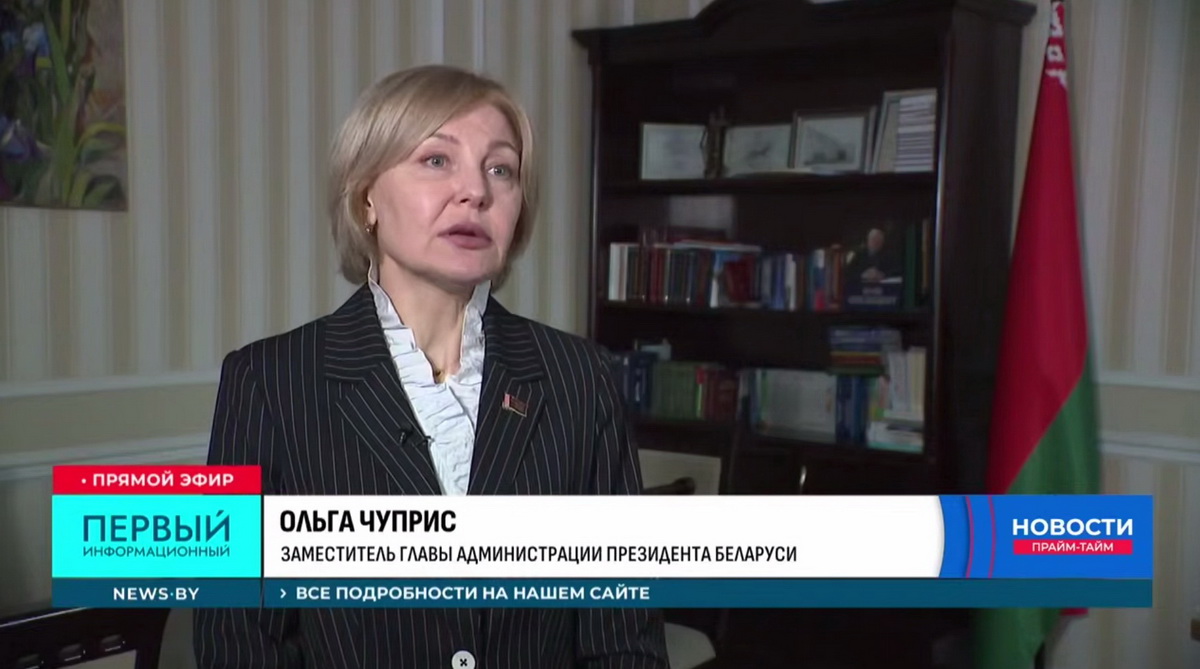 Замглавы Администрации президента Ольга Чуприс в сюжете заявляет, что помилование «предоставлено под условие правопослушного поведения».