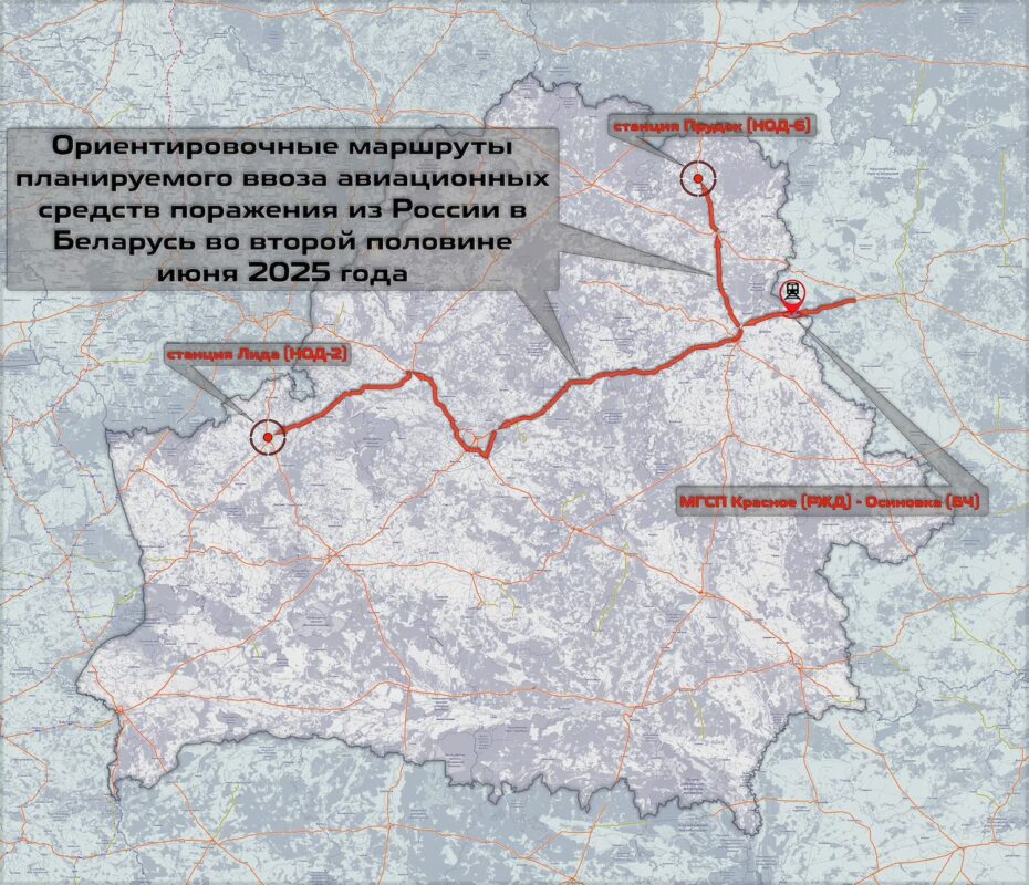 Станции отправления российских авиационных боеприпасов, их точный объём, а также дата отправки на данный момент неизвестны. Отправка груза была согласована с Управлением военных сообщений РБ (ВОСО РБ) ещё в конце мая 2025 года, утверждают активисты.
