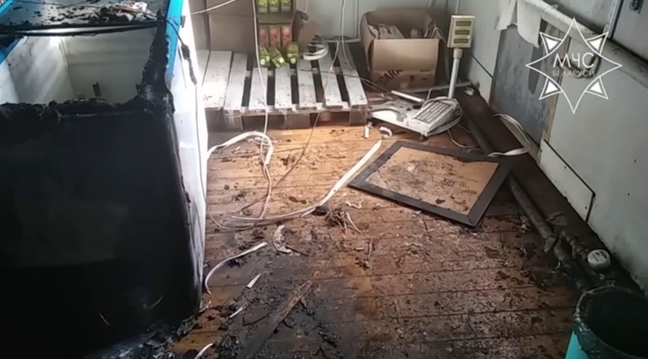 В результате пожара уничтожен холодильник, повреждены стены и обшивка двери, закопчена продукция. Пострадавших нет, сообщает МЧС.