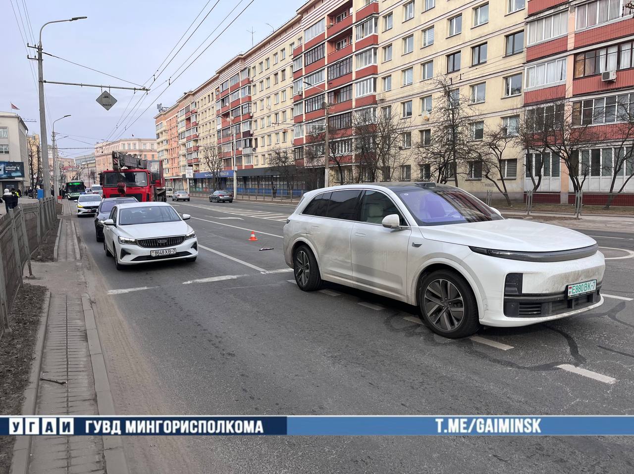 Сегодня около 14:40 LiXiang и Toyota столкнулись на улице Сурганова. От удара Toyota отбросило на тротуар, где машина сбила 82-летнего мужчину. Его забрали в больницу для обследования.