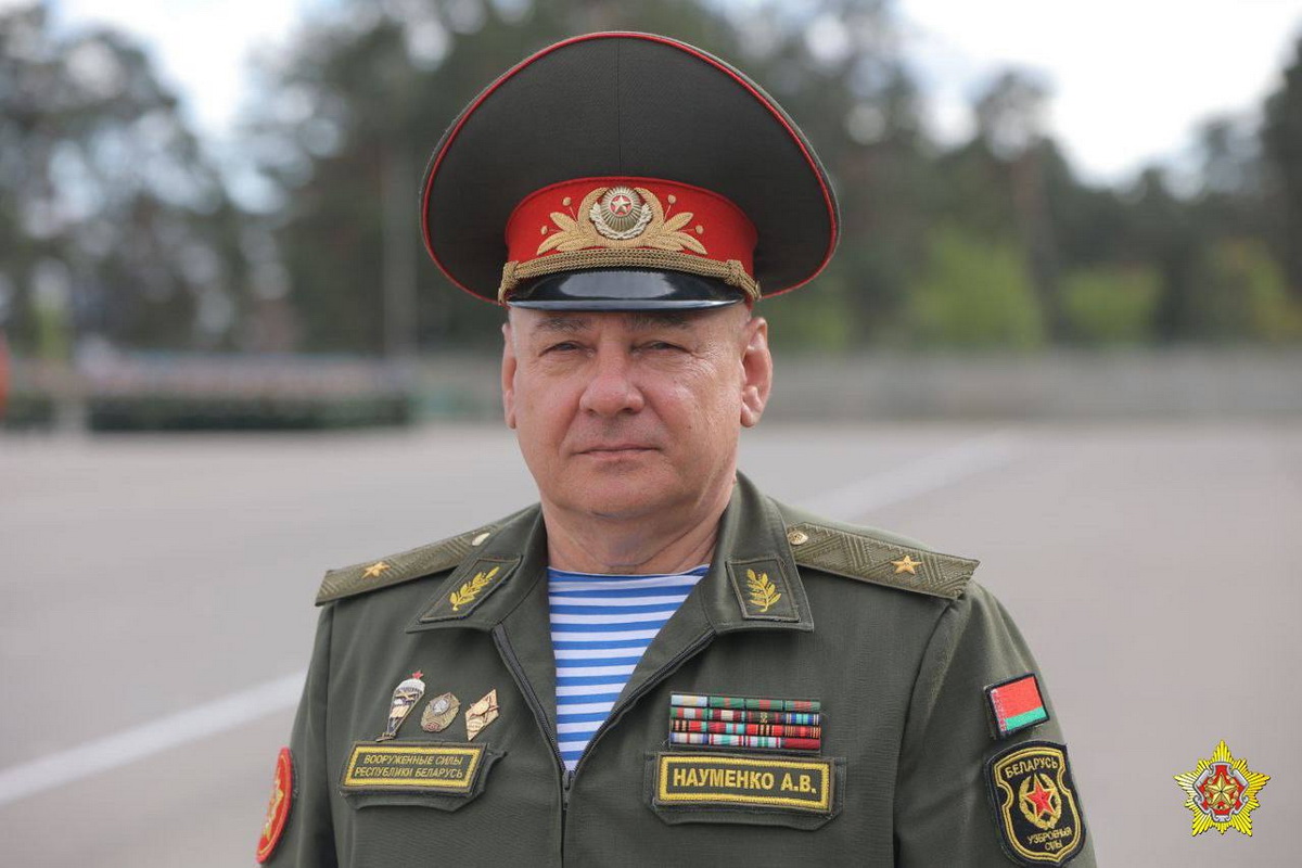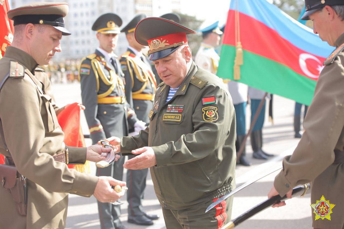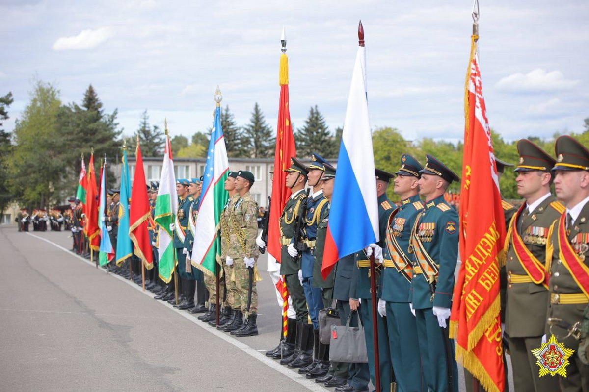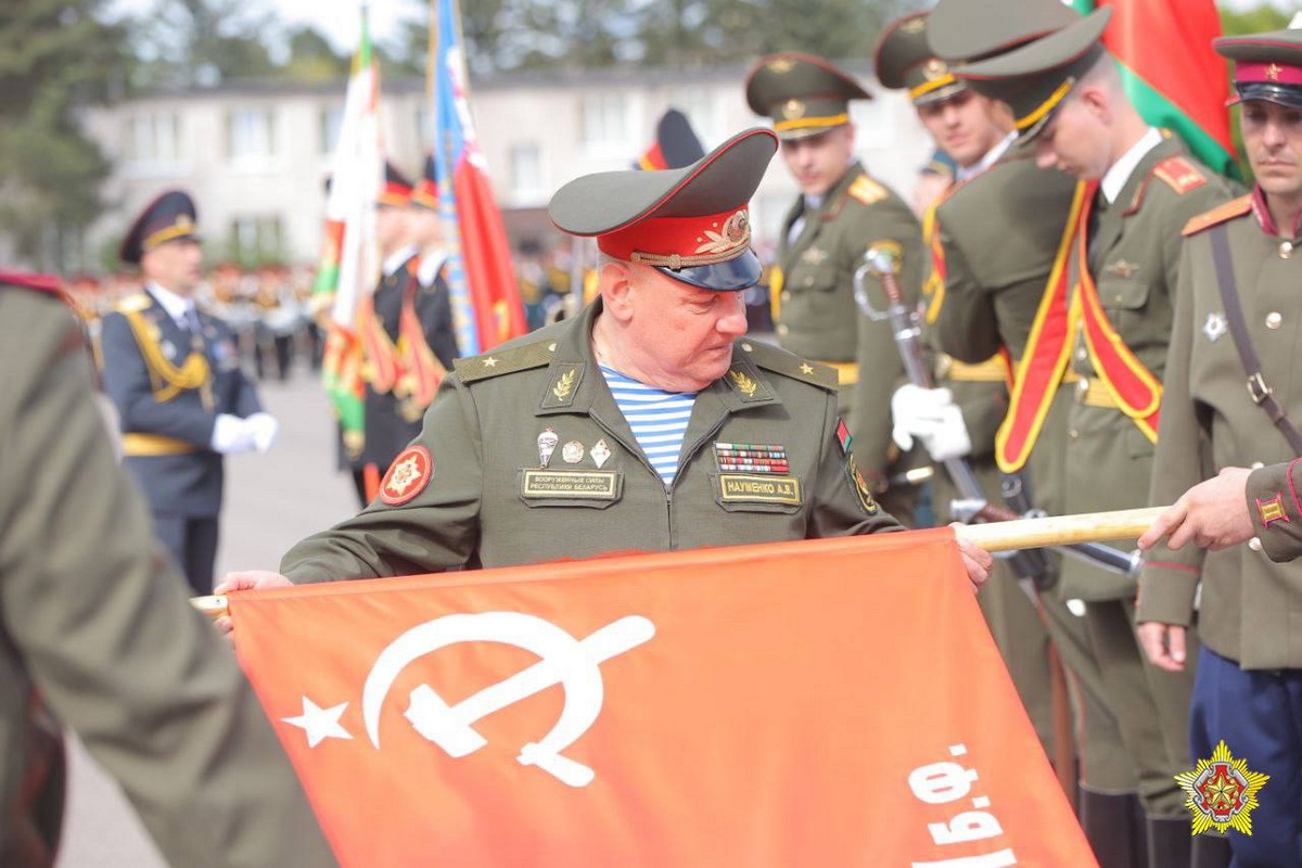 Заместитель министра обороны Беларуси Александр Науменко провел строевой смотр Государственных флагов и Боевых знамен, оружия, формы одежды и готовности к параду войск Минского гарнизона, посвященному 80-летию Победы.