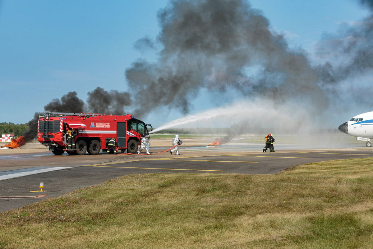 В Национальном аэропорту «Минск» в соответствии с требованиями Аварийного плана аэропорта отработали проведение аварийно-спасательных работ после столкновения самолетов. В комплексном учении приняли участие служба поискового и аварийно-спасательного обеспечения полетов (СПАСОП), оперативные группы органов государственного управления и другие организации.