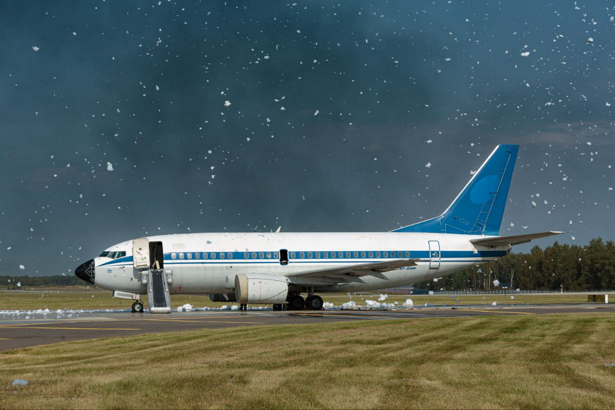 По легенде, при заходе на посадку Ил-76 столкнулся с пассажирским Boeing, находившимся на предварительном старте. В результате происшествия у Boeing была разрушена кабина экипажа и пропала радиосвязь, а у Ил-76 произошло частичное разрушение крыла. Экипаж транспортного самолета сумел совершить аварийную посадку, после чего возник пожар.