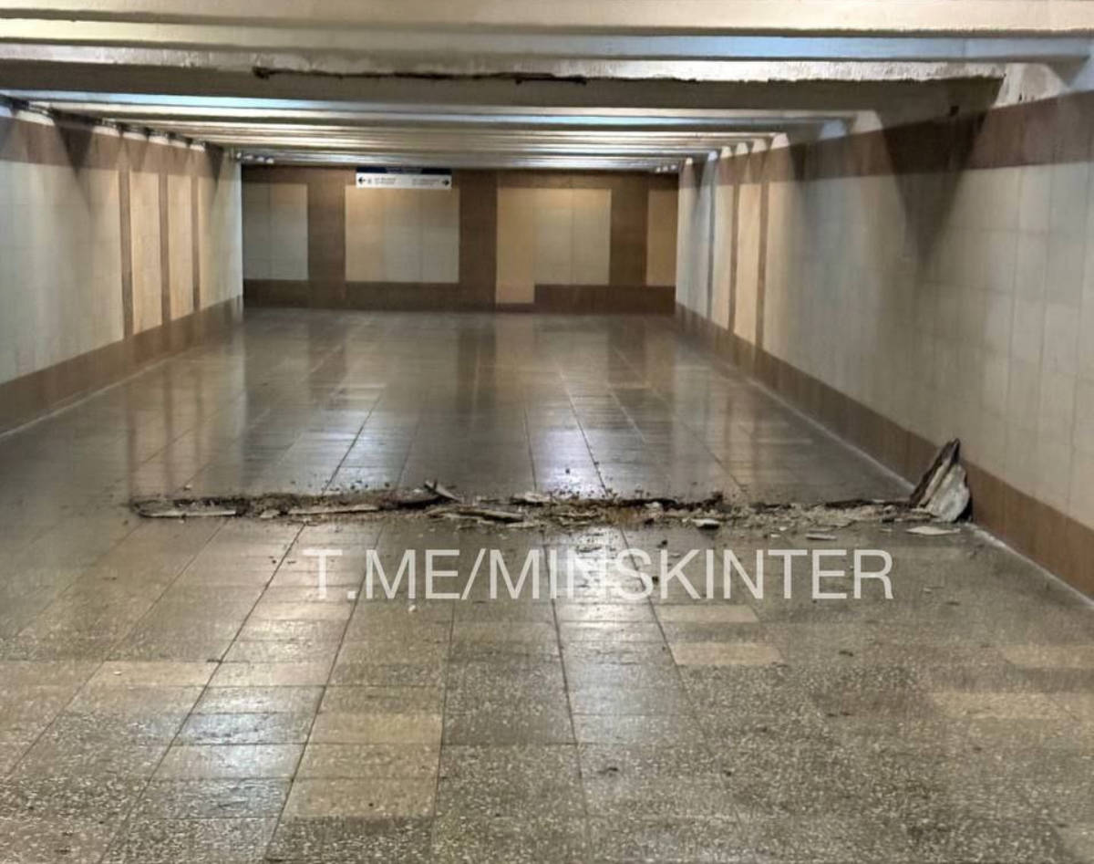 В Минске в подземном переходе на улице Гвардейской куски штукатурки упали с потолка.