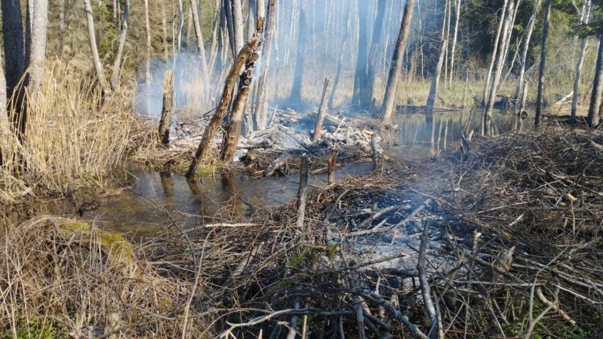 В Боровлянском спецлесхозе в Ратомке сгорела бобровая хатка. Причиной пожара стал поджог.