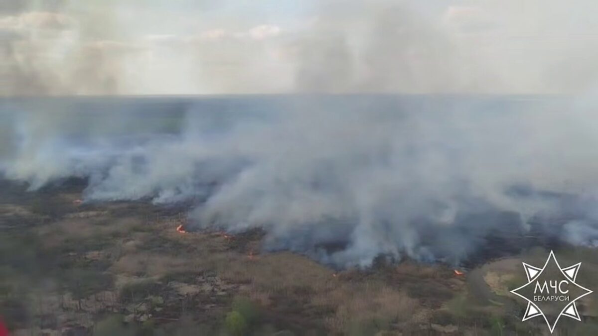 Возле деревни Старина Столинского района Брестской области горит лес. Пожар тушат с применением авиации, так как подъездные пути отсутствуют, а местность заболочена.