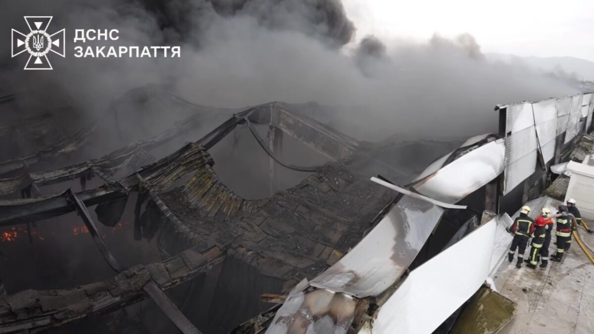 В украинском городе Мукачево уже сутки продолжается ликвидация пожара, который возник в результате вчерашнего российского ракетного удара.