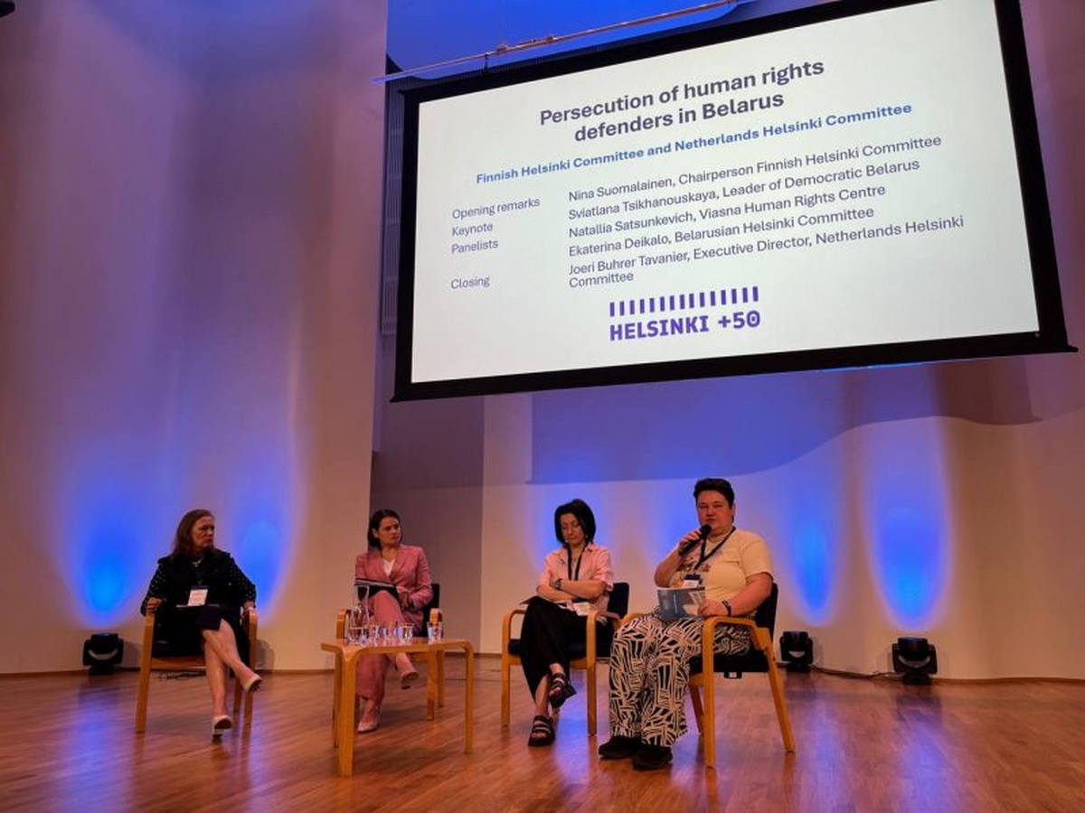 Один из сайд-ивентов в рамках конференции посвящен Беларуси и тому, как преследуются правозащитники в этой стране. Его организаторами выступили Финский Хельсинкский комитет и Нидерландский Хельсинкский комитет. Мероприятие посвящено 50-летию Хельсинкских соглашений.