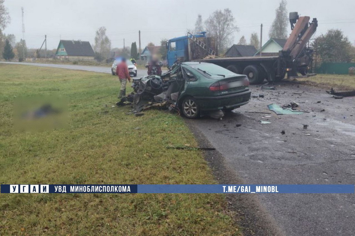 50-летний водитель, которы был лишен водительских прав по ч. 2 ст. 317-1 УК, ехал на Renault Laguna в направлении деревни Борки. Он выехал на встречную полосу и столкнулся с МАЗом 6303 под управлением 43-летнего водителя.