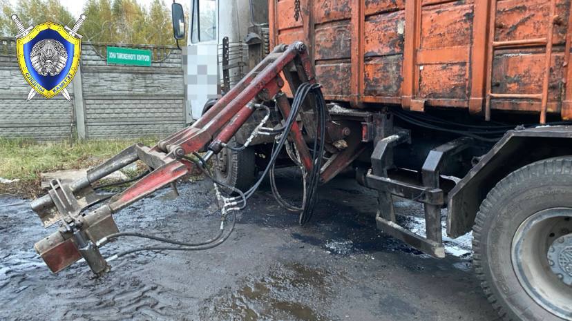 «Установлено, что находясь между шасси и кузовом транспортного средства, водитель открутил шланг гидравлической системы, в результате чего произошло падение давления и кузов опустился», — рассказали в комитете.