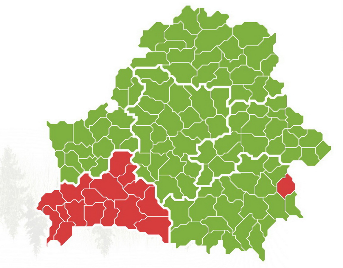 Запрет на посещение лесов введен во всех районах Брестской области и в Ветковском районе Гомельской области. Такие данные следуют из интерактивной карты Министерства лесного хозяйства.