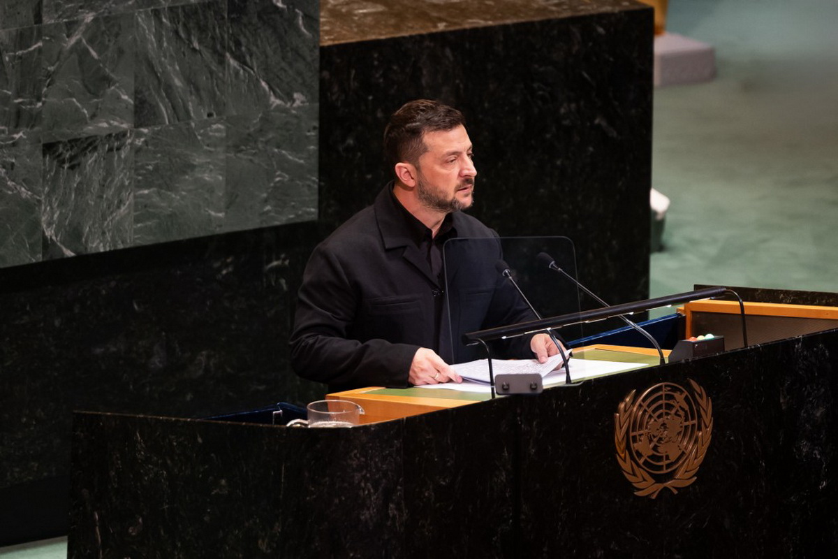 Президент Украины Владимир Зеленский во время выступления на общих дебатах Генеральной Ассамблеи ООН в Нью-Йорке заявил, что международные институты демонстрируют слабость перед лицом глобальных угроз, а многие народы — от Судана до Палестины — десятилетиями слышат лишь заявления вместо реальной помощи.